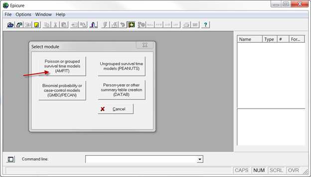 The log window shows that 1761 records from the data were read and one record was rejected. The “rejected’ record is the one containing variable names. In the upper right panel you see variable names, and in the lower right panel – the structure of the default model.