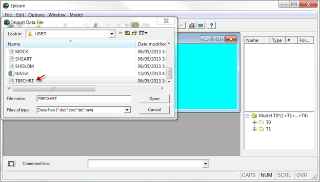 Select Import other text data file... from the File /New Analysis menu. Select the module for analysis. (As in the previous examples, we will use AMFIT). Select the data file (change directory if necessary). In this example, we are going to use TBFCHR.DAT. Press “Open” or double click on the file name.