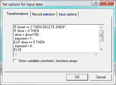 •Define transformations that will be carried out as the data are read (Transformation tab);