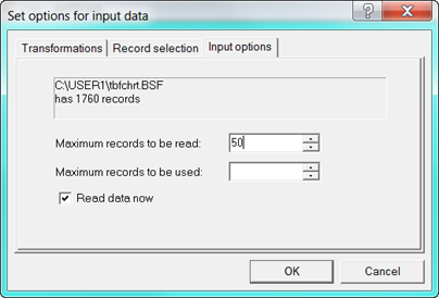 •Specify input options such as the maximum number of records to read or to use. You can also defer immediate reading of the data (Input Options tab)