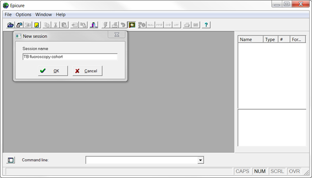 Open EPICURE and select New session... from the File/New Analysis menu.